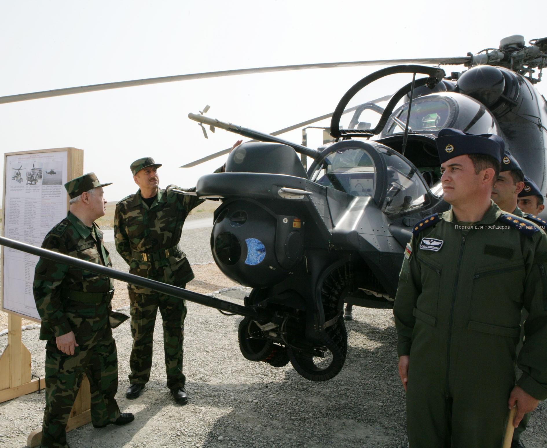 Осмотр вертолёта Ми- 35м президентом Азербайджана
