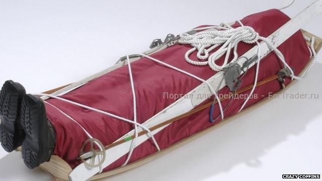 Есть гроб в виде саней, в комплекте с лыжами, его заказал полярный исследователь.