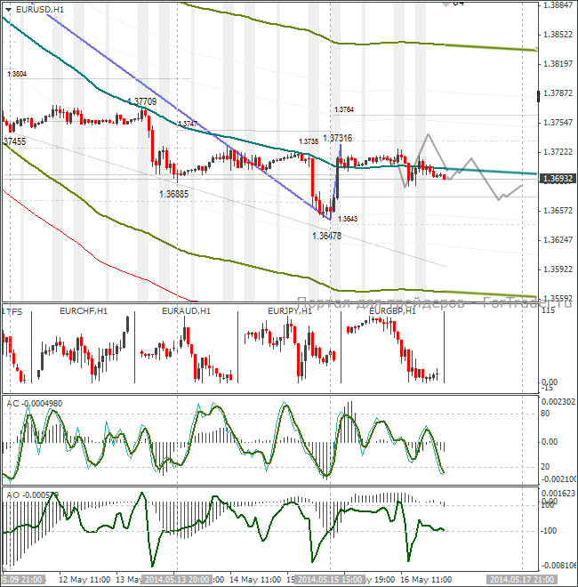 После отскока от недельного минимума 1,3647 в пятницу курс евро/доллар торговался около балансовой линии lb. Пары евро/доллар и фунт/доллар из-за падения кросс-курса евро/фунт торговались между собой разнонаправленно.