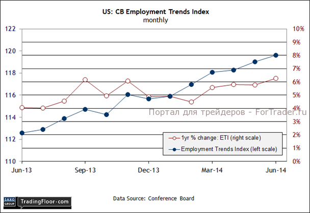 Как ожидается, индекс тенденций в сфере занятости, составляемый Conference Board, не принесет с собой сюрпризов (индекс представляет собой сводный результат на основании восьми опубликованных ранее индикаторов на рынке труда). В то же время он позволит глубже оценить ситуацию и подтвердит гипотезу о том, что занятость продолжает расти, пусть и невысокими темпами.
