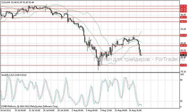 На фоне понижения прогнозов по темпам роста мировых экономик негативная динамика наблюдается по сырьевым инструментам. В пятницу едва ли будем наблюдать закрепление ниже области 80,00, однако количество коротких позиций на рынке будет возрастать. Вероятно, неделя будет закрываться с котировкой выше 82,21.