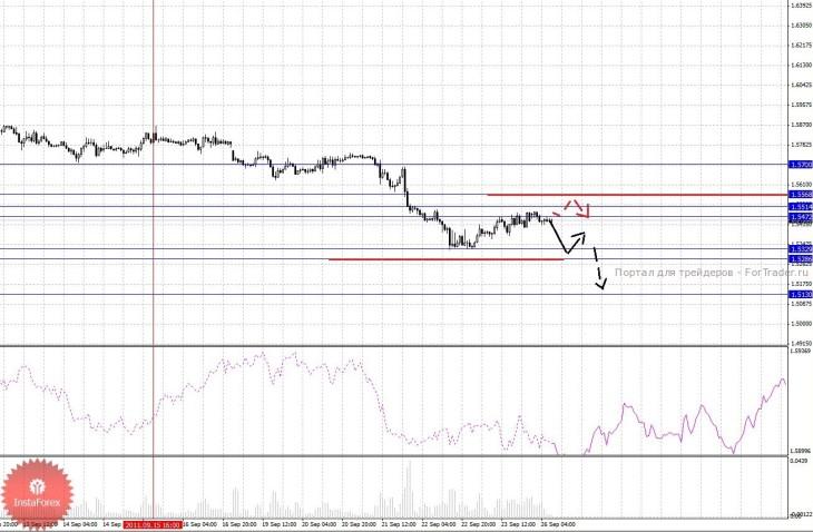 По паре Евро/Йена ключевыми уровнями являются: 105.47, 105.08, 103.93, 103.29, 102.14, 101.79, 100.98, 100.54 и 99.55. Здесь продолжения развития нисходящей структуры от 15 сентября, ожидаем после прохода ценой шумового диапазона 102.14 – 101.79, в данном случае цель 100.98, в коридоре 100.98 – 100.54 консолидация цены. Потенциальным значением для низа, считаем уровень 99.55, движение к которому, ожидаем после пробоя 100.54. Краткосрочное восходящее движение, возможно в диапазоне 103.29 -103.93, пробой последнего значения будет располагать к формированию восходящей структуры, здесь потенциальная цель 105.08. Диапазон 105.08 – 105.47 шумовой, до него мы ожидаем оформления начальных условий для восходящего цикла.