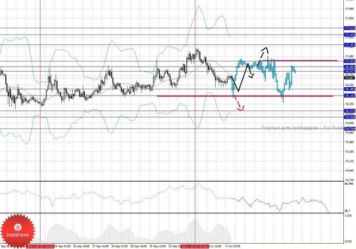 По паре Доллар/Йена ключевыми уровнями являются: 77.62, 77.50, 77.30, 77.00, 76.89, 76.81, 76.48, 76.35, 76.07, 75.95 и 75.73. Здесь диапазон 76.48 – 76.35 является ключевой поддержкой для восходящей структуры от 23 сентября, в нем мы ожидаем краткосрочное нисходящее движение, пробой уровня 76.35 должен сопровождаться выраженным нисходящим движением к уровню 76.07. В коридоре 76.07 – 75.95 консолидация. Потенциальным значением для низа, считаем уровень 75.73, по достижении которого, ожидаем откат к верху. Корректировочное восходящее движение, возможно в диапазоне 76.81 – 76.89, пробой последнего значения приведет к углубленному движению, здесь цель 77.00, пробой которого, в свою очередь, будет располагать к развитию восходящей структуры, в данном случае первая цель 77.30.