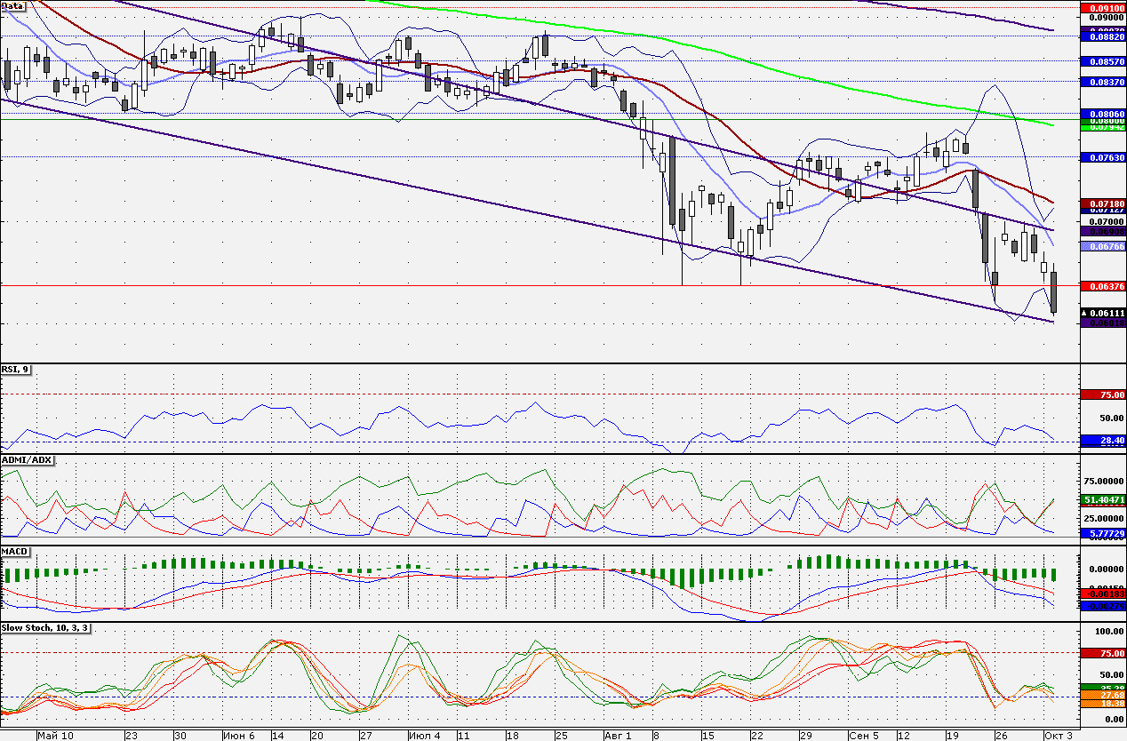 Акции ВТБ торгуются в нисходящем тренде, причем накануне протестировали нижнюю границу данного тренда. Акции следует откупать от 6,000 коп., при пробитии вниз данной отметки «лонги» стоит закрывать. Сопротивлением является 6,376 коп. От данной отметки «лонги» стоит закрывать.