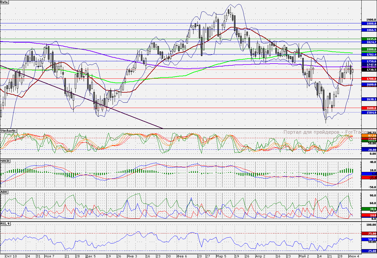 Ближайшие уровни поддержки: 1700,00/1680,00