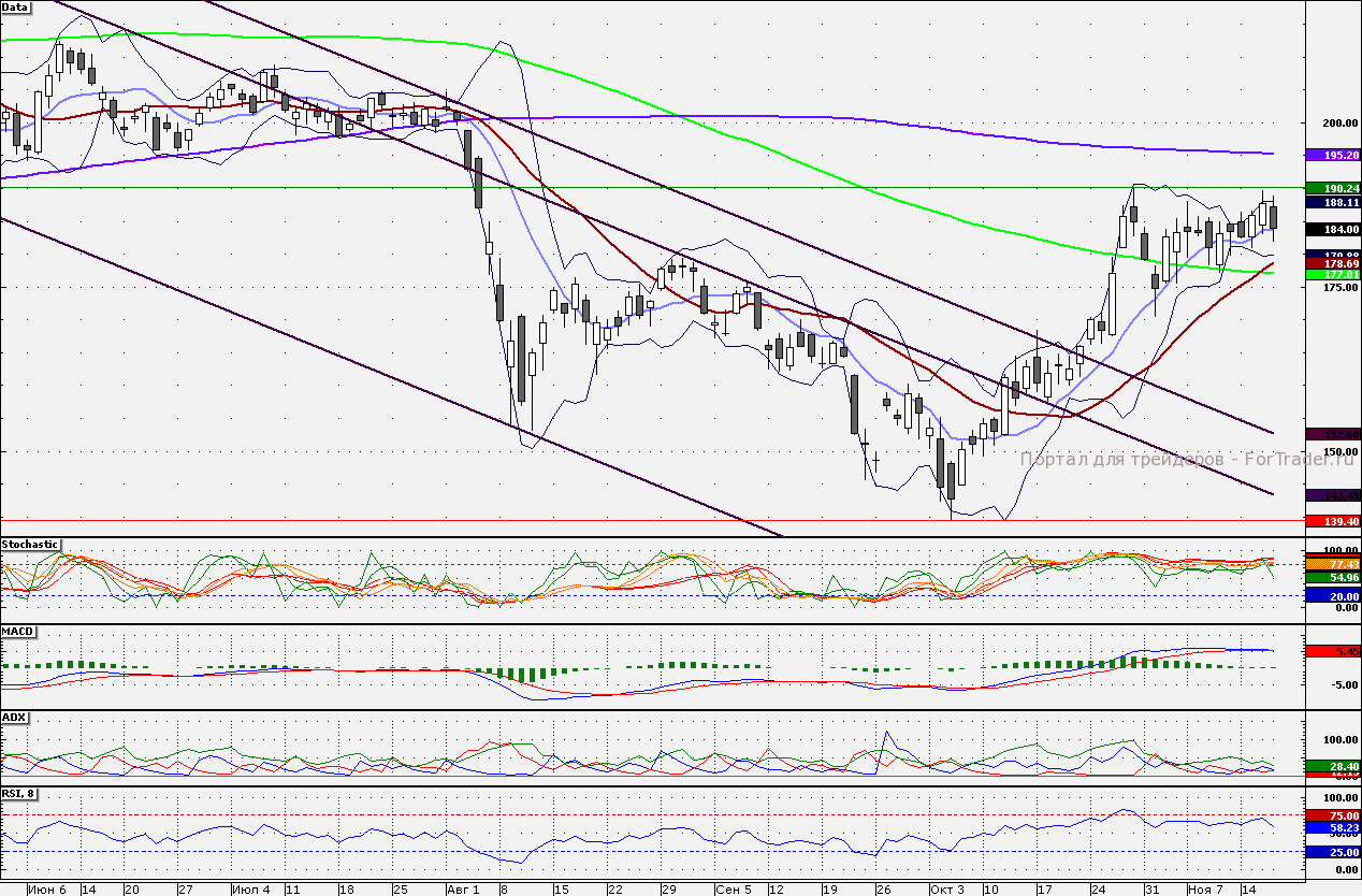 Акции компании закрылись в районе 10-дневной скользящей средней – 183,79 руб. Негативный внешний фон способствует продолжению распродаж и акции компании могут устремиться в район 180 руб., от данной отметки подешевевшие акции стоит откупать. Сопротивлением является 185 руб.