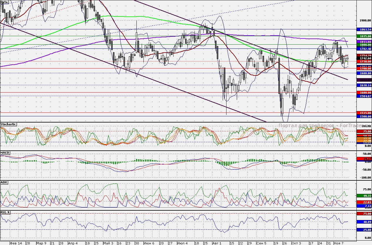 Ближайшие уровни поддержки: 1730,00/1700,00/1680,00