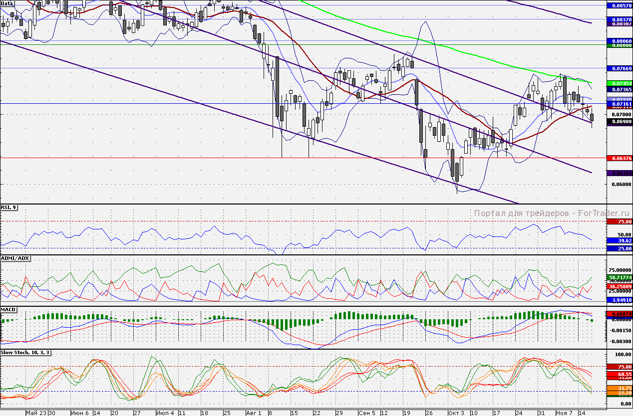 Акции ВТБ накануне закрылись ниже психологической отметки 7,000 коп., что усиливает негативный внешний фон, сформировавшийся к сегодняшнему открытию торгов. Сопротивлением является психологическая отметка 7,000 коп., от данной отметки «лонги» стоит закрывать. Поддержкой является район вчерашнего минимума – 6,800 коп., в случае пробития которого акции могут вернуться в боковик, характерный для октября.