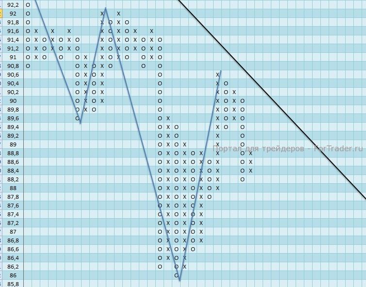 Уровнем сопротивления выступает отметка 90,6, где проходит основная линия нисходящего тренда, преодоление которой отменит действующий сигнал к продаже и поступит сильный сигнал к покупке.