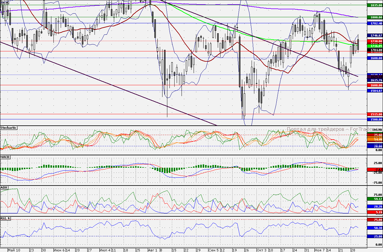 Ближайшие уровни сопротивления: 1730,00/1750,00/1780,00/1800,00