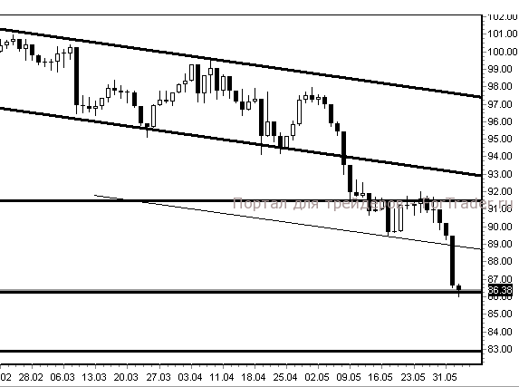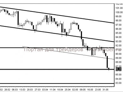 В случае пробоя вниз уровня поддержки 86,40$, вероятно дальнейшее снижение к отметке 83$. Если же данный уровень устоит, акции могут скорректироваться вверх до 89$.