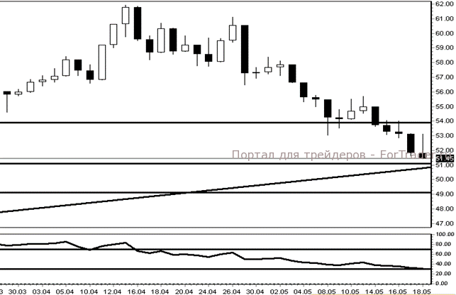 В случае отбоя вверх от уровня поддержки $ 51можно открывать длинные позиции с целью на 54$ за акцию. В случае пробоя вниз уровня поддержки мы допускаем снижение до 49$.