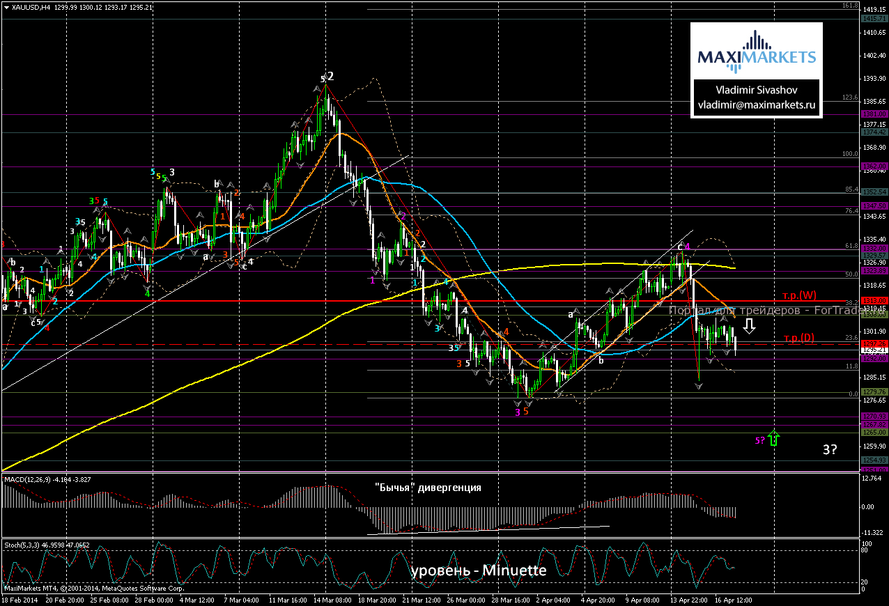 На вчерашних торгах золото возобновило снижение на фоне позитивной статистики по промышленному производству в США, опубликованной ранее. Кроме того, участники рынка ожидали подтверждение восстановления американской экономики и от данных по рынку труда в США. Настрой на усиление доллара, а также предстоящие длинные выходные в связи с празднованием «Страстной пятницы» поддержали фиксацию прибыли и закрытие сделок на покупку металла. В результате курс золота возобновил умеренное снижение, но всё ещё торгуется в зоне коррекционного отката, сохраняя вероятность продолжения восходящей коррекции. Критерием для полного возвращения нисходящей тенденции является последовательный пробой предыдущих локальных минимумов — 1284$ и 1277$ за тройскую унцию. По итогам дня стоимость фьючерсов на золото на Нью-Йоркской бирже «Comex» составила 1294.93$ за унцию (- 8.77$).