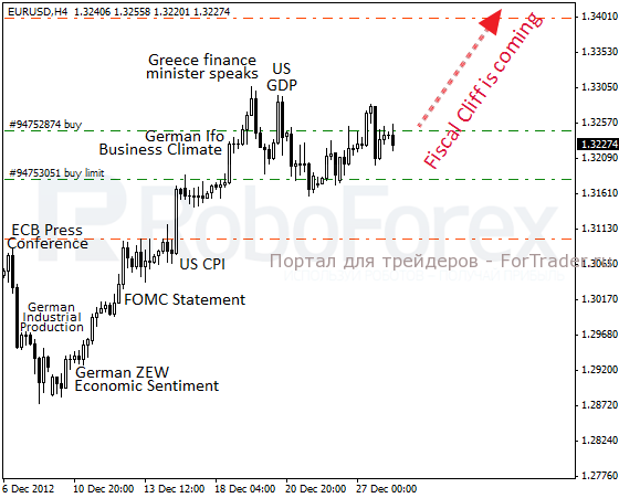 В пятницу Обама снова соберёт совет в Белом доме, который станет последней попыткой достигнуть хоть какого-то компромисса. Скорее всего, американский президент предложит включить в соглашение только самые критические пункты, которые помогут избежать 1 января так называемого «фискального обрыва». Вполне возможно, что политики смогут согласовать стартовую планку для повышения налогов на уровне $500-700k. В противном же случае, все шишки за ухудшение ситуации в экономике полетят уже на республиканцев.