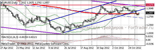 В случае преодоления сопротивления на $1.2955 (пройденная линия поддержки от 24 июля) следующим сопротивлением выступит $1.2982 (пик 1 ноября) и область $1.3020/25 (максимумы 25 и 31 октября). Ближайшая поддержка 2месячный минимум на $1.2765/60, следующая находится на $1.2750/45 (минимумы 1011 сентября).