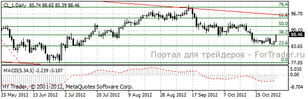 Ближайшее сопротивление расположено у $89.20 (максимумы 6 ноября), преодоление которого откроет путь к $92.25. Далее важное сопротивление находится в области $92.90/$93.00. Ближайшей поддержкой выступает область $84.60/50, следующая расположена у $83.75, далее $82.50. Небольшое сопротивление находится в области $85.90/$86.00.