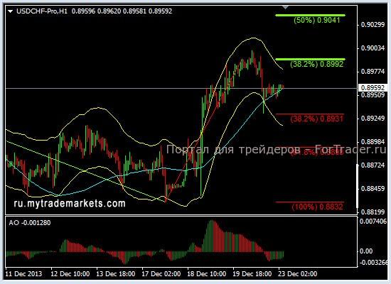 Валютная пара USDCHF заходила в зону совершения покупок и если сделка была исполнена, то первая цель уже достигнута. Стоп можно переместить на уровень безубытка. Можно попытаться держать покупки до очередных целей 0,8975 и 0,9000. Если сделка не была совершена, то ее следует пропустить.