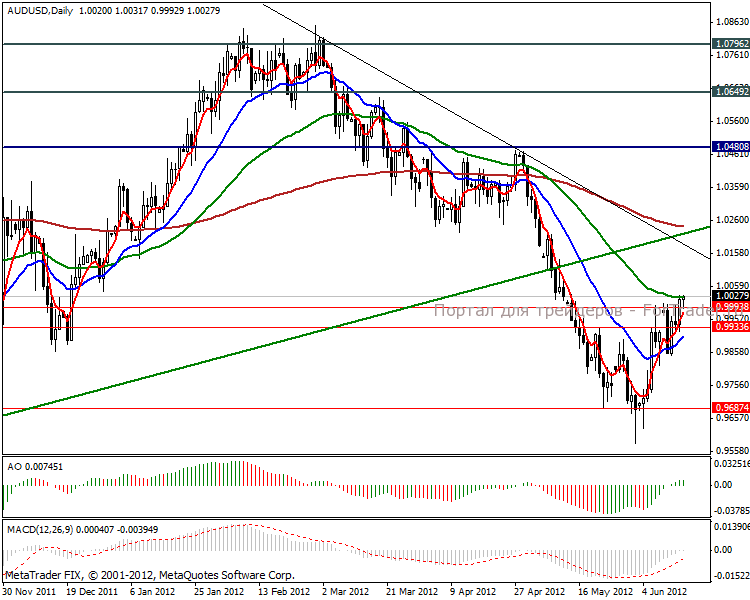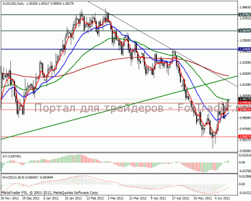 В данный момент пара aud/usd укрепляется уверенными темпами, несмотря на негативные показатели со стороны торгового баланса Австралии. Дефицит торгового баланса в апреле составляет 203 млн. австралийских долларов, что превзошел прогнозируемый дефицит в 900 млн.австралийских долларов. К текущей тенденции можно отнести майские данные по индексу будущего делового доверия от NAB, где индикатор сполз до -2 пунктов против апрельского значения +4 пункта. При этом индекс текущих условий в прошлом месяце составил -4 пункта в соотношении с нулевым апрельским значением, что стало минимумом трех лет.