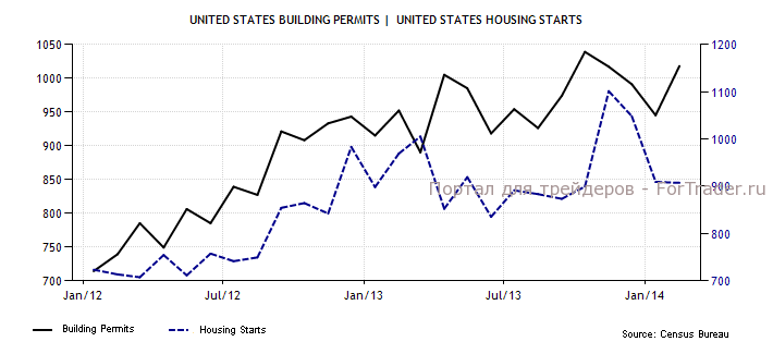 Противоречивые данные статистики по США не оказали во вторник заметного влияния. Разрешения на строительство в США выросли до 4-месячного максимума, в то время как закладки новых домов немного снизились, упав до 4-месячного минимума. Число разрешений на строительство увеличилось в феврале на 7,7%, до 1018 тыс., с 950 тыс. месяцем ранее, значительно превысив ожидания (это наибольшие темпы прироста с октября прошлого года).