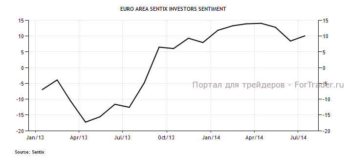 Евро незначительно вырос на фоне улучшения настроений среди инвесторов еврозоны после двух месяцев снижения, что было связано с новыми мерами ЕЦБ по стимулированию экономики и улучшением ожиданий в отношении мировой экономики. Sentix укрепился в июле до 10,1 п., по сравнению 8,5 п. в июне (полугодовой минимум), против ожиданий снижения. Подындекс ожиданий вырос впервые после четырех месяцев снижения.