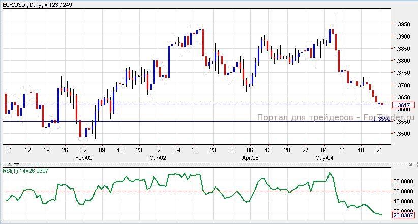 Евро упал против основных валют, поскольку индекс делового климата в Германии от IFO оказался хуже прогнозов и составил 110.4 против 111.0 пунктов. Согласно техническому анализу дневного графика, пара EUR/USD торгуется выше уровня поддержки 1.3550. Пара пробила уровень поддержки, с индикатором относительной силы ниже отметки 50, и может коснуться отметки 1.3580. Тем не менее, прорыв уровня сопротивления 1.3725 вызовет падение пары к отметке 1.3800. Сегодня состоится выступление главы Европейского центрального банка Марио Драги.