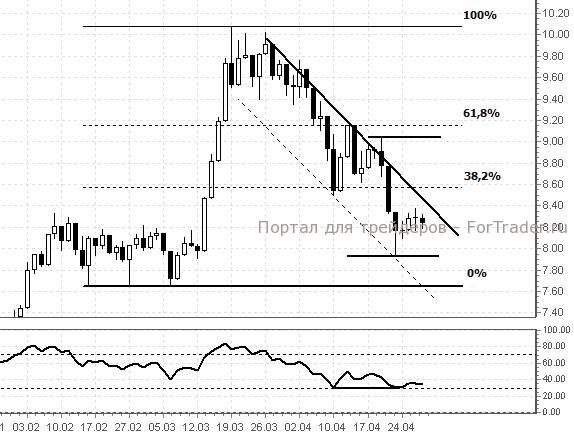 С точки зрения технического анализа, график цены продолжает находиться в рамках краткосрочного нисходящего канала. В случае отбоя вниз от уровня сопротивления $8,62, следующей целью цены будет ценовая отметка $7,65 за акцию. При пробое вверх линии сопротивления нисходящего канала, мы ожидаем дальнейшего роста до ценовой отметки $9 за акцию. О возможном тестировании ее на прочность свидетельствует дивергенция на индикаторе RSI.