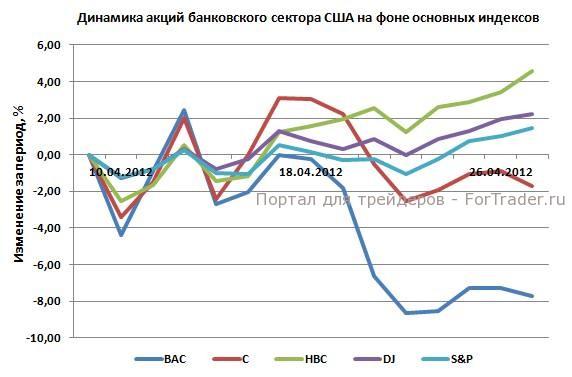 Негатива мировым фондовым рынкам на прошлой неделе добавила политическая нестабильность, связанная выборами во Франции и отставкой правительства в Нидерландах. Ухудшению настроения инвесторов способствовали и неожиданно низкие показатели предпринимательской активности в Еврозоне и опубликованный британским банком HSBC прогноз возможного сокращения объема производства в Китае. Вышедшие в пятницу, 27 апреля негативные данные по ВВП США в I квартале 2012 года: 2,2% роста в годовом выражении против прогнозных 2,5% также были не в пользу финансовых рынков.