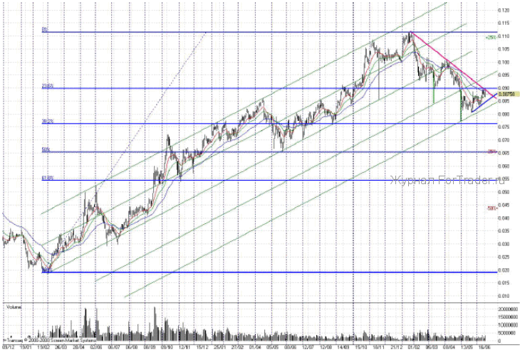Многим трейдерам интересна текущая моя стратегия по «ВТБ». Я представлю дневной срез, где видны не только ранее указанные мной в обзорах скользящие средние ЕМА13 и 26, но и другие предпосылки к аккуратным покупкам. И ответы на вопросы, почему я планирую усилить позиции от уровней 9 или 8,5 копейки. Техника примитивная и в особор разъяснении даже для биржевых школьников, полагаю не нуждается.