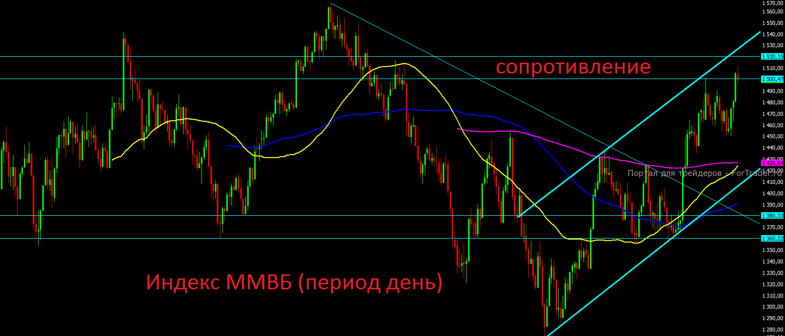 Российский индекс ММВБ находится вблизи важной зоны сопротивления 1500-1520 пунктов, откуда вполне может начаться разворот, но судя по динамике рынка внутри дня, без повода инвесторы распродавать активы пока не хотят, все также ждут разрешения проблем в США и финальный вынос. Пока нет намёков и поводов на коррекцию, поэтому делать ставку на снижение пока не стоит, но и заходить в рынок с долгосрочными покупками на текущих уровнях ещё более глупо.