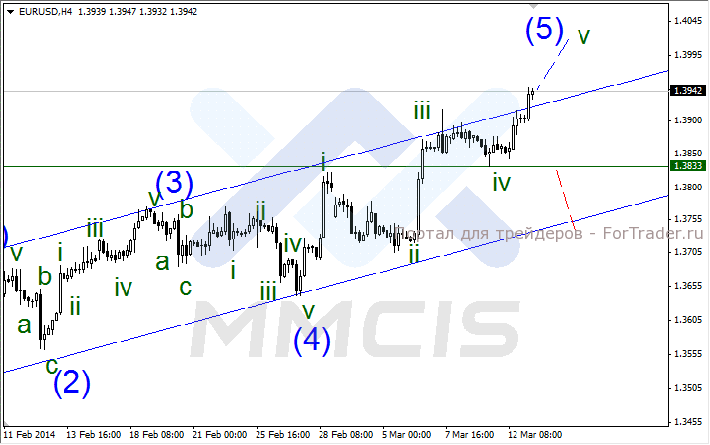 В качестве основного сценария рассматривается начало коррекции в рамках волны «а» к отметке 1.3750. В качестве альтернативного сценария рассматривается пробой уровня сопротивления 1.3920, что укажет на удлинение волны «5» к уровню 1.4000.