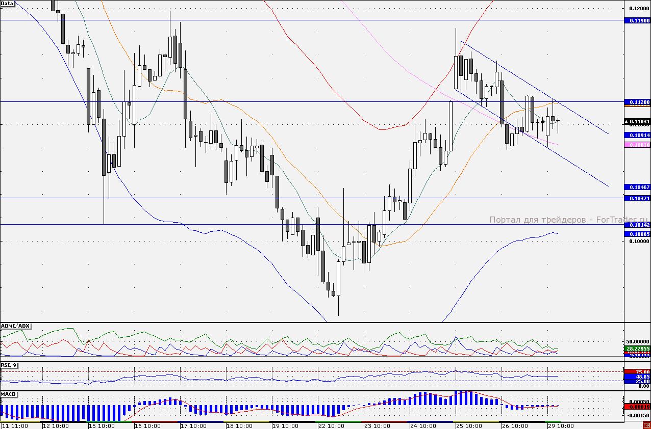 На часовом графике акций «ФСК ЕЭС» сформировалась фигура продолжения тренда «флаг». В первой половине дня акции оттолкнулись от нижней границы «флага» — 10,80 коп., усиленной близостью прохождения 10-дневной скользящей средней. Пока трендовые индикаторы дают разнонаправленные сигналы. Если гистограмма индикатора MACD (5;10;5) снижается на отрицательной территории, что является позитивным сигналом для «быков», то индикатор ADMI/ADX показывает, что преимущество пока сохраняется на стороне продавцов (линия «медведей» находится выше линии «быков»). Таким образом, для принятия торговых решений пока стоит придерживаться границ сформированной фигуры (10,80-11,20 коп.). Стоит отметить, что обычно прорыв «флага» происходит в направлении предшествующей тенденции. Так при закреплении акций над верхней границей фигуры целью выступит отметка 11,60 коп., равная высоте фигуры отложенной вверх от точки пробоя. Однако сегодня «быки» могут не найти должной поддержки, в связи с чем при приближении к верхней границе канала спекулятивные «лонги» стоит сокращать. Наш 30-минутный торговый робот находится в «лонгах», удерживая длинные позиции от отметки 10,25 коп., но при ухудшении настроений готов перевернуться.