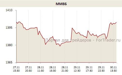 Российский фондовый рынок готовится завершить трудную осень на мажорной ноте, торги пятницы начались возле нуля, но к середине дня на московской бирже наконец-то проявились признаки активности, поток оптимизма из-за рубежа стал опорой для осторожного роста акций. Рынок вернулся к уровню в 1400 пунктов по индексу ММВБ, возле которого, напомним, он закончил прошлый год, и стоит признать, что за прошедшие 11 месяцев, вместившие в себя множество событий, перспективы мировой экономики не прояснились. Таким образом, декабрь даст ответ на вопрос об успешности всего подходящего к концу года, и мы сохраняем позитивные ожидания на оставшиеся 20 торговых сессий. До поступления конкретики из США торги, на наш взгляд, пройдут в боковике в коридоре 1380-1420 пунктов по индексу ММВБ, а затем рынок наконец-то сможет настроиться на подъем.