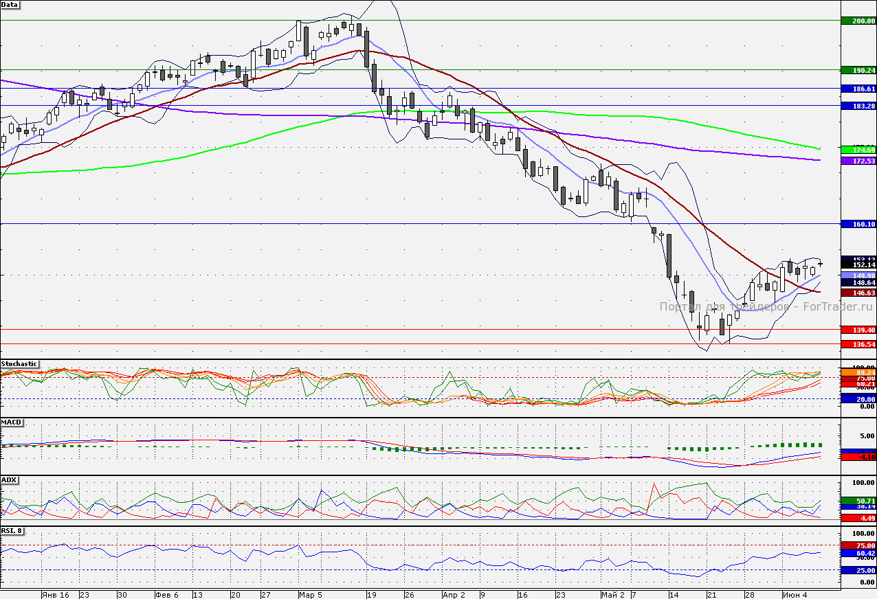 Ближайшие уровни поддержки: 150,00/146,63/145,00/143,00