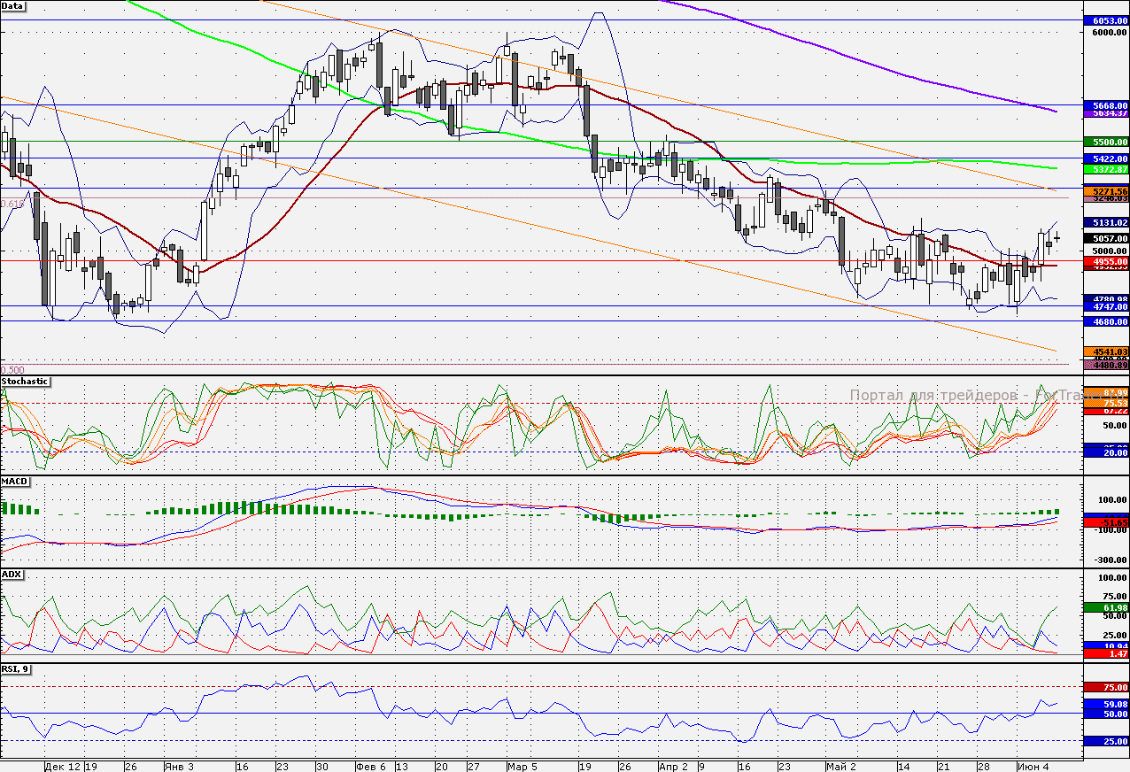 Ближайшие уровни поддержки: 5000,00/4932,33/4750,00