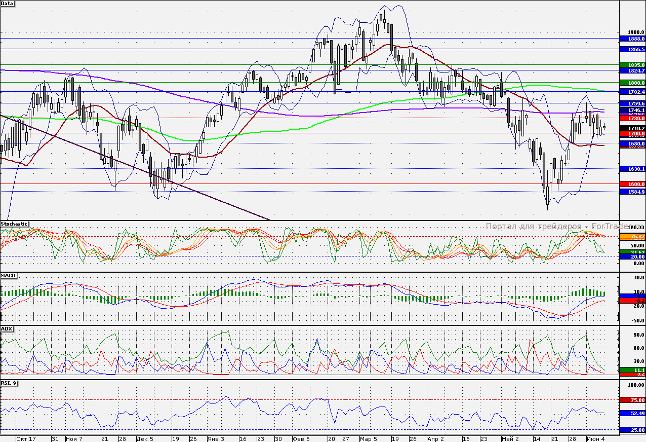 Ближайшие уровни поддержки: 1700,00/1680,00