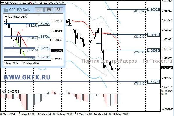 Пара GBPUSD значительно снизилась на статистике по Великобритании, которая не оправдала ожиданий, а отчет Банка Англии по инфляции указал на мягкую денежно-кредитную политику, не оправдав ожиданий. В результате пара снижалась на сотню пунктов. Ожидаю продолжения снижения через откат. На эту неделю традиционно рассматриваю два варианта возможного движения цены, основной красный и альтернативный зеленый. Значимые уровни на сегодня отмечены на часовом графике. Индикатор АО находится в отрицательной зоне и растет, указывая на коррекцию перед возможным продолжением снижения. Индикатор тренда указывает на снижение. Продажи от 1,6810 с целями 1,6785, 1,6760 и 1,6730.