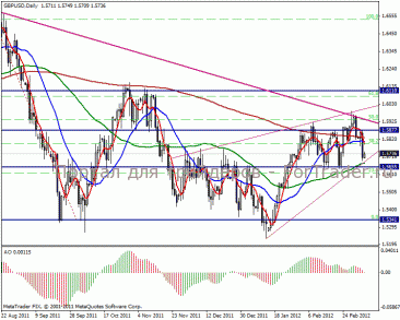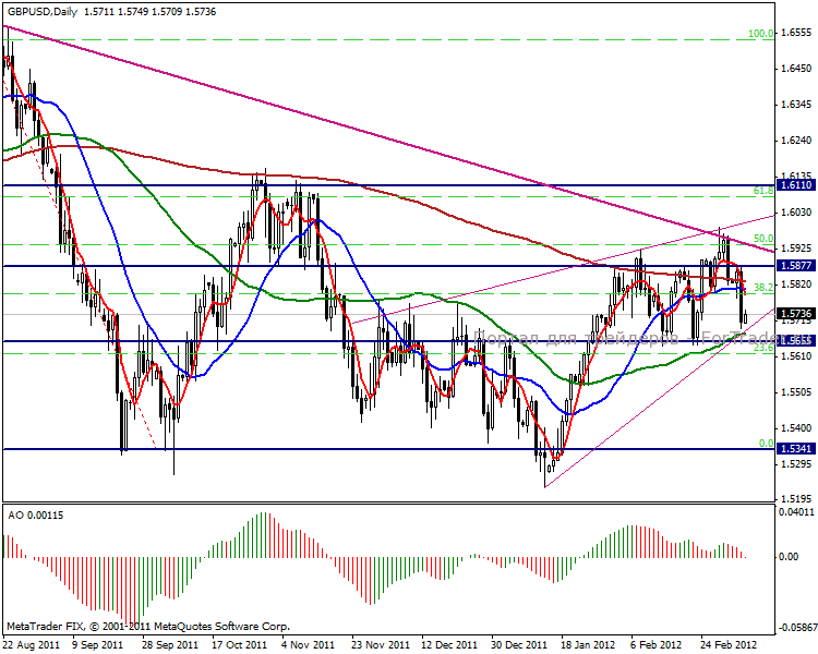 Дневной график рисует отскок от линии восходящего тренда в направлении средины канала 1.5655-1.5877 пунктов. Вероятнее всего пара пойдет к верхней границе диапазона. Среднесрочная перспектива взятие цели в 1.5341 пунктов.