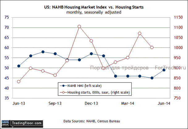 Уже в предыдущем отчете можно было заметить признаки улучшения ситуации на рынке жилья. В июне индекс жилищного рынка поднялся до уровня 49, восстановившись после зимнего спада, который привел к тому, что в мае по этому индикатору было зафиксировано самое низкое за 12 месяцев значение. «После нескольких месяцев низкой динамики улучшение показателя настроений среди застройщиков на целых четыре пункта служит благоприятным сигналом и демонстрирует возрождение уверенности в будущем этой отрасли», — заявил в предыдущем релизе председатель NAHB Кевин Келли (Kevin Kelly).