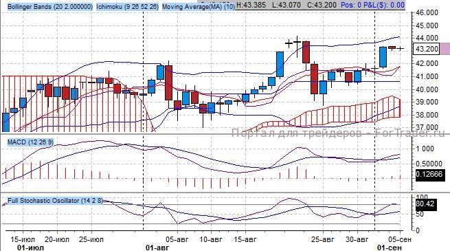 Осциллятор стохастик вернулся в зону перекупленности (80 пунктов и выше). Согласно торговле по индикатору – приоритетны продажи после выхода за пограничную зону в 80 пунктов.