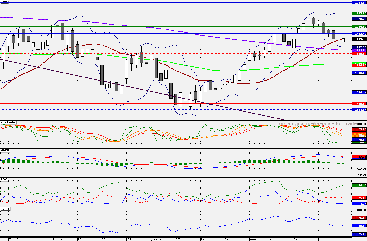 Ближайшие уровни сопротивления: 1780,00/1800,00/1825,00/1835,00