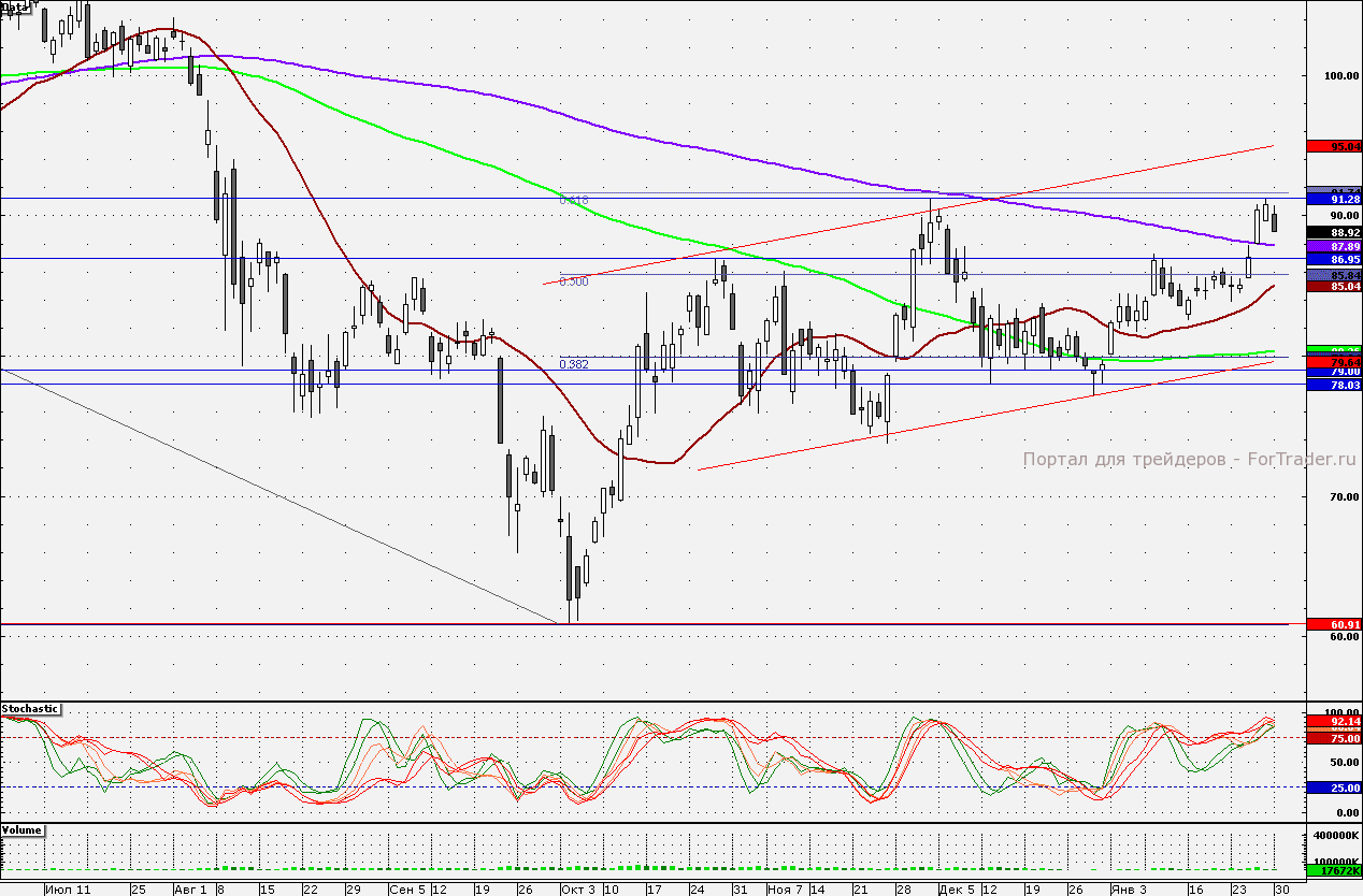 Ближайшие уровни поддержки: 87,89/87,05/85,00/84,00
