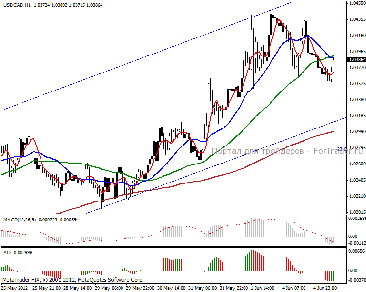 На часовом графике видим движение внутри восходящего канала. Тенденция достаточно сильная, поскольку коррекционная фаза практически не выходит за границы диапазона. Внутри дня сможем опуститься к уровню в 1.0331 пунктов, поскольку веер МА показывает коррекцию старшего тайм фрейма. Однако рекомендуем входить однозначно в лонг на более длительный период.