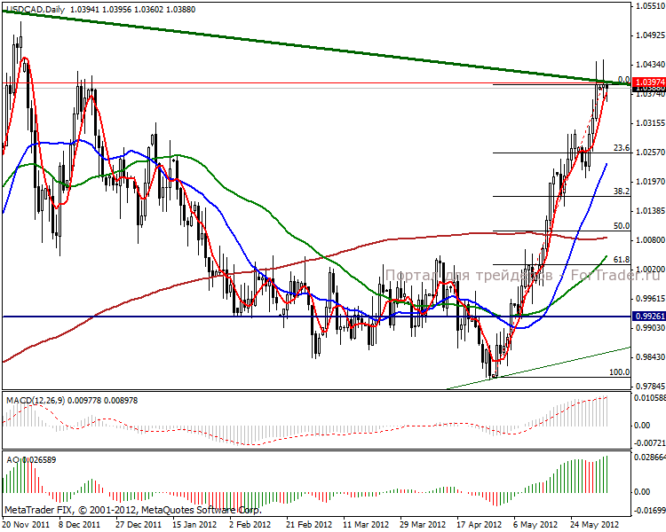 На сегодня пара usd/cad демонстрирует мощные растущие импульсы в пути взятия цели в отметке 1.0769 пунктов. Доллар США укрепляется значительной мерой так же в отношении остальных валютных пар, что приводит и снижению цен на товарных рынках. Апрельские данные по безработице показали ожидаемый уровень в 7.3%, показатель увеличился лишь на 0.1% в сравнении с месяцем ранее.