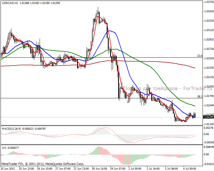 На часовом графике видим сильное нисхождение. Тенденция достаточно сильная, поскольку коррекционная фаза набрала оборот, первая цель в отметке 1.0169 пунктов была взята и теперь идем к 1.0031 пунктов. В краткосроке рекомендуем вставать в короткую.