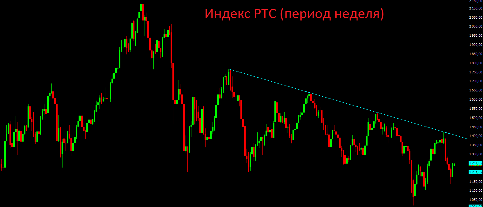 С технической точки зрения российские индексы продолжают находиться в понижательном тренде. Максимальный потенциал роста на ближайшие месяцы пока видится до отметки 1350 пунктов по индексу РТС. С небольшими коррекциями цена с высокой вероятностью туда придёт в ближайшие месяцы, а пока весь рост, который мы наблюдаем в последние дни это всего-лишь технический отскок к последней волне снижения.