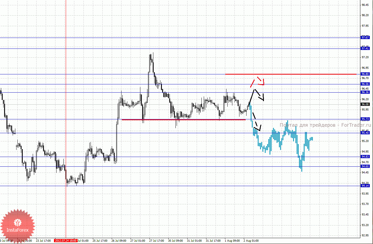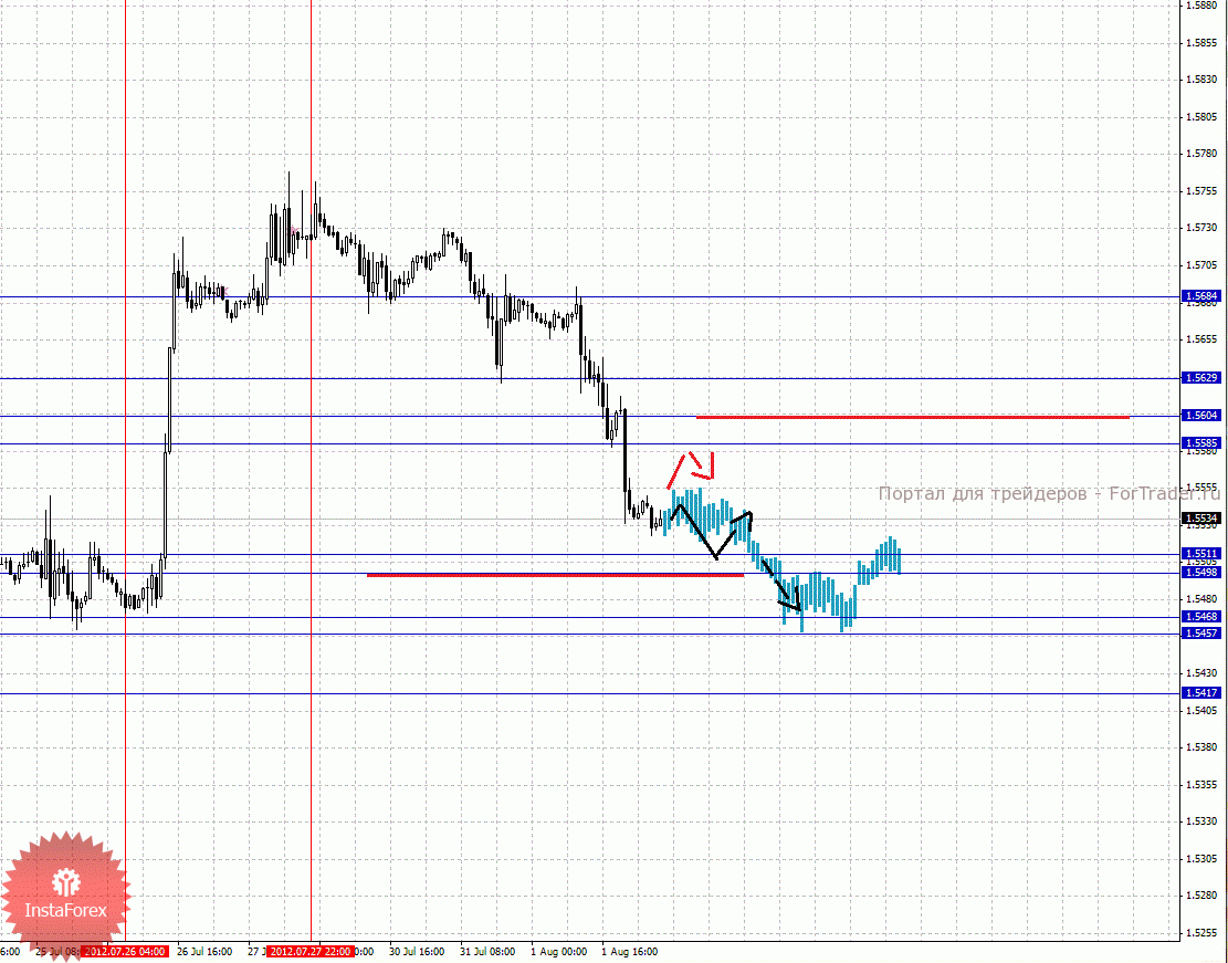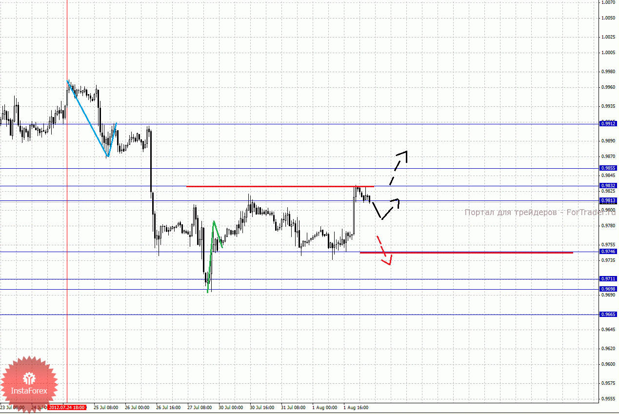 По паре Доллар/Франк ключевым уровня являются: 0.9912, 0.9855, 0.9832, 0.9813, 0.9746, 0.9711, 0.9698 и 0.9665. Здесь мы следим за развитием нисходящей структуры от 24 июля. Продолжения движения книзу ожидаем после пробоя 0.9746, в данном случае цель 0.9711, в коридоре 0.9711 – 0.9698 консолидация цены. Потенциальным значением для низа считаем уровень 0.9665, по достижении которого ожидаем откат кверху. Краткосрочное восходящее движение ожидаем в коридоре 0.9813 – 0.9832, пробой последнего значения приведет к движению до 0.9855, отсюда высока вероятность разворота книзу, его пробой будет располагать к развитию восходящей структуры. Уровень 0.9912 интересен с точки зрения среднесрочной перспективы.