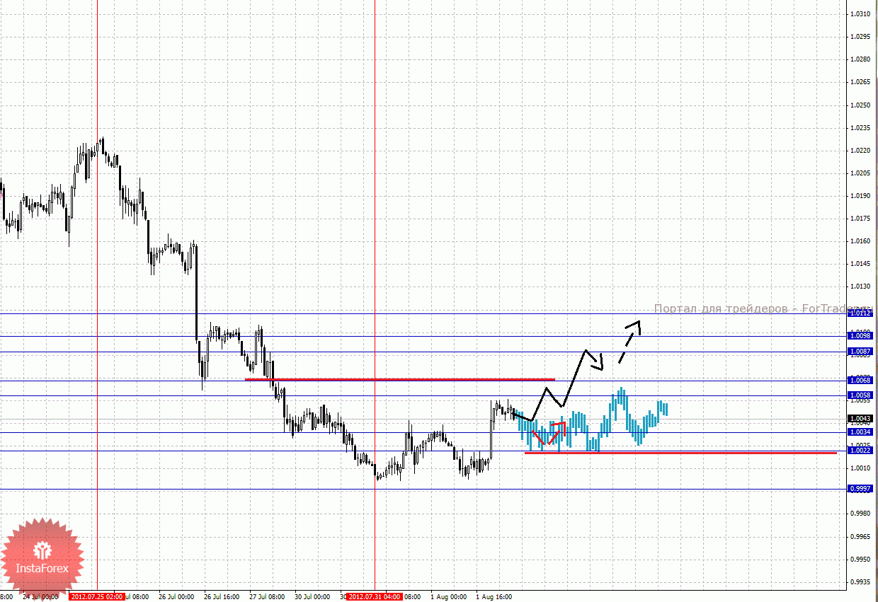 По паре Австралийский доллар/Доллар ключевыми уровнями являются: 1.0607, 1.0577, 1.0540, 1.0505, 1.0489, 1.0432, 1.0410, 1.0369, 1.0350 и 1.0319. Здесь от 1 августа формируется потенциал для нисходящего движения. Краткосрочное движение книзу возможно в коридоре 1.0432 – 1.0410, пробой последнего значения должен сопровождаться импульсом к уровню 1.0369, в коридоре 1.0369 – 1.0350 консолидация цены. Потенциальным значением для низа считаем уровень 1.0319, по достижении которого ожидаем откат кверху. Диапазон 1.0489 – 1.0505 является ключевым сопротивлением для продолжения развития восходящей тенденции в масштабе Н1, его проход ценой, приведет к движению до – 1.0540, далее уровни остались без изменения.