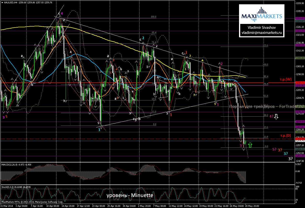Пробой линии поддержки дневного треугольника продолжил создавать сильное давление на курс золота, что привело к продолжению падения пары XAU/USD в среду к ценовому уровню 1256$ за тройскую унцию. Таким образом, был установлен новый минимум с февраля 2014 года. По итогам торгов на нью-йоркской товарной бирже Comex июньские фьючерсы на золото потеряли в цене еще 0.5%, завершив торговую сессию на уровне 1259$ за унцию металла.