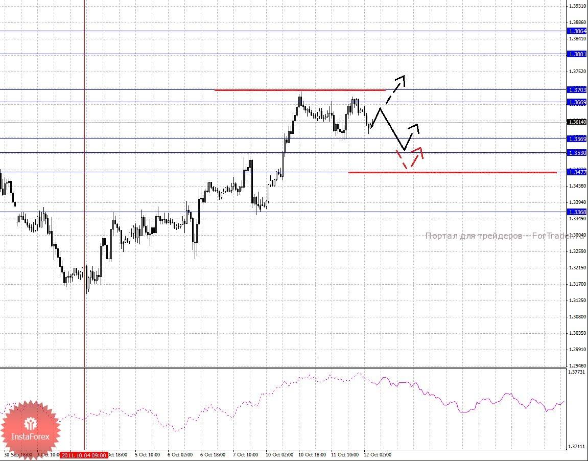 По паре Евро/Доллар важными уровнями являются: 1.3864, 1.3801, 1.3703, 1.3669, 1.3569, 1.3530, 1.3477 и 1.3368. Здесь краткосрочное восходящее движение, ожидаем в диапазоне 1.3669 – 1.3703, отсюда существует высокая вероятность разворота к низу и выполнение коррекции. Пробой уровня 1.3703 будет сопровождаться неустойчивым движением к верху, здесь цель 1.3801, однако уровень может быть не достигнут ценой. Потенциальным значением для восходящей структуры от 4 октября, является уровень 1.3864 (это предел 423), наиболее рационально работать от данного значения. Корректировочное нисходящее движение, ожидаем в диапазоне 1.3569 – 1.3530, пробой последнего значения приведет к углубленной коррекции, здесь цель 1.3477, от этого уровня мы ожидаем разворот к верху, его пробой окажет негативное влияние на развитие восходящей структуры. Уровень 1.3368 является ключевой поддержкой для верха и интересен с точки зрения среднесрочной перспективы.