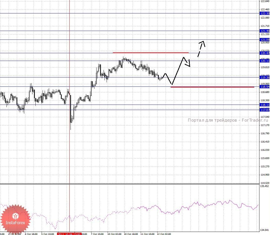 По паре Фунт/Йена ключевыми уровнями являются: 122.30, 121.49, 121.09, 120.47, 120.11, 119.36, 118.94, 118.11 и 117.87. Здесь мы следим за локальной восходящей структурой от 6 октября. Краткосрочное восходящее движение, ожидаем в диапазоне 120.11 – 120.47, пробой последнего значения должен сопровождаться выраженным восходящим движением к уровню 121.09, в коридоре 121.09 – 121.49 консолидация цены. Потенциальным значением для верха по-прежнему считаем уровень 122.30, по достижении которого, ожидаем откат к низу. Краткосрочное нисходящее движение возможно в диапазоне 119.36 -118.94, пробой последнего значения окажет негативное влияние на развитие восходящей структуры от 6 октября, в данном случае мы ожидаем неустойчивое движение к низу. Диапазон 118.11 – 117.87 является ключевой поддержкой для верха и интересен с точки зрения среднесрочной перспективы.